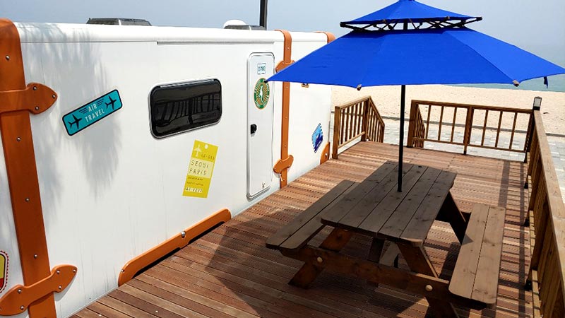 (체크아웃 : 열쇠, 리모컨 등 반납 필수) - 카라반 데크 위 텐트 설치를 금지 합니다.